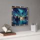 Esta trabalho de arte capta um momento sereno, mas dramático, de uma pessoa pescando em um lago, com uma tempestade épica de raios soprando no céu acima. A única textura de ferramentas do fundo e a paleta de cores impressionante criam uma poderosa experiência visual que combina tranquilidade com o caos.