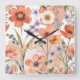 Relógio Quadrado Terracotta Wildflower Rustic Boho Wall Acentos