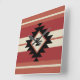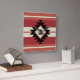 Teste padrão boémio étnico asteca com formas geométricas em cores vermelhas, alaranjadas, cinzentas e pretas em fundo listrado