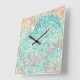 Relógio Quadrado Teste padrão floral multicolorido do Doodle
