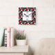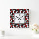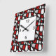 Relógio Quadrado Teste padrão geométrico preto cinzento vermelho