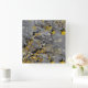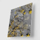 A clock that has a stone wall design on it along with gold vines and leaves, there is gold stars and the shadows can be seen, on this square clock. The art and design was created digitally on a computer with special effects.