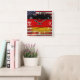 Legal relógio quadrado para alguém com uma herança alemã americana! Uma bandeira americana desbotada e vestida se misturava com a bandeira alemã e colocava sobre um pedaço de madeira rústico com tinta começando a decolar.