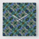 Relógio Quadrado Tiras transversais curvas, em verde e azul