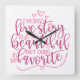 Personalize seu relógio de parede para criar uma peça de declaração de decoração de parede funcional para combinar perfeitamente com sua decoração doméstica, mostrar sua arte ou foto favorita ou dar como presente personalizado. Esse relógio exclusivo de parede de alta qualidade é impresso vibrantemente com o processo AcryliPrint®HD e apresenta um slot pré-instalado de backside para facilitar o enforcamento e um design sem tique.