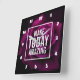 Um relógio quadrado com o texto inspiracional: faça um dia incrível. Projetado com uma fotografia de um misterioso rosa gótico roxo-rosa.