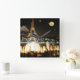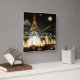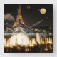 A vista clássica do Palais de Chaillot à noite. A torre fica atrás de fontes iluminadas enquanto uma lua massiva olha para baixo.