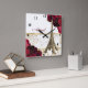 Relógio Quadrado Torre Eiffel Personalizada Dourada, Rosa de mármor
