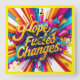 Um design vibrante onde o texto multicolorido "Hope Fuels Changes." irradia com energia, cada letra brilhando com sotaques de ouro que simbolizam o poder da esperança de transformar. As matizes vivas se misturam em harmonia, evocando um sentimento de otimismo e renovação, enquanto os destaques do ouro acrescentam um toque inspirador de calor e promessa. "A Imagem Original foi gerada pelo Meta AI. A IA gerou trabalho de arte. Licenciado sob CC BY-SA 4.0.