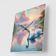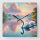 Sereno e elegante, este trabalho de arte capta um par de cisnes a deslizar graciosamente através de um lago tranquilo ao pôr do sol. Ideal para decoração inspirada na natureza ou ideias românticas de presentes.