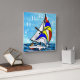 Uma imagem digital criada do painel do vitral da cor completa de um veleiro pequeno, sob a vela completa.