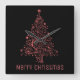 Relógio Quadrado Vermelho Metálico Estrelas Árvore de Natal Preto E