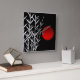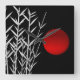 Vermelho-sol negro, branco-branco, Bambu-árvores e sol vermelho em círculo preto-e-branco desenhado à mão com tinta na tradicional pintura japonesa