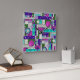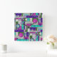 Este relógio de parede tem um padrão de deco de blocos quadrados em vidro digital manchado. Um design geométrico colorido de cor rosa, roxo, verde e verde, perfeito para um pop de cor no seu decor doméstico. Você pode fazer o padrão neste relógio maior ou menor.