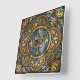 A bela design intrincada de uma janela de vidro manchado medieval.