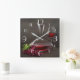 Relógio Quadrado Vinho e Uva Ainda Vinho de Parede Quadrado