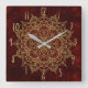 Relógio Quadrado Vinho Profundo Mandala e Dourada Gama Moderna