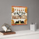 Relógio Quadrado Vintage Halloween, Gatos Negros com Jackolanteras