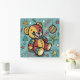Relógio Quadrado Whimsical Patchwork Christmas Teddy Bear