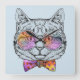 Esta design apresenta um gato bonito e legal vestindo óculos arco-íris e uma gravata de arco pontilhada pela polca.