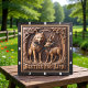 Relógio Quadrado Wolf Deer Pair Wood Carving