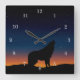 Relógio Quadrado Wolf Howling Silhouette no Sunset Wall Clock