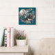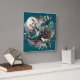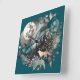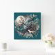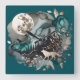 Relógio Quadrado Wolf Landscape & Moon Teal Dourado