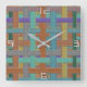 Relógio Quadrado "xadrez" colorido da vovó, com aspecto canvas