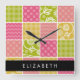 Relógio Quadrado Zigzag, Chevron, Bolinhas, Gingham, Seu Nome