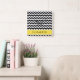 Relógio Quadrado Zigzag preto-e-branco, padrão Chevron, seu nome
