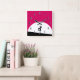 Um relógio com uma criatura zombie legal. Esquema de cor rosa e preto a negrito vibrante. Uma silhueta zumbi com braços estendidos na caça por cérebros. Uma grande lua branca ilumina por trás. Números de relógio do estilo da arte deco.
