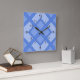 Quadrados de diferentes tamanhos são entrelaçados. Quadrado e fundo são mostrados em três tons de sua cor escolhida (o padrão é um azul escuro médio). Os números de 12, 3, 6 e 9 têm o dobro do tamanho dos números restantes e estão sentados na borda do quadrado menor.
