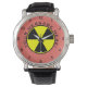 Design do símbolo radioativo, preto e amarelo, com texto circular configurável!