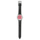 Red textured background with subtle swirling patterns, resembling soft, curly fabric. The overall tone is warm and vibrant.