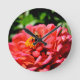 Belo Dia de Verão! Bonito zinnia de coral laranja com um pequeno abelhinho. Foto de H Cooper. O texto é personalizável!