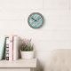 Relógio Redondo Abstrato azul, padrão de floco de neve de cinza co