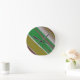 Relógio Redondo Abstrato Diagonal Verde E Marrom