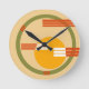 Este relógio tem um desenho abstrato moderno do século médio de um círculo dourado dentro a um círculo verde com listras laranja e branca.