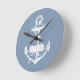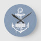 Relógio Redondo Âncora e nome azul empoeirado náutico