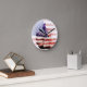Um grande dedo "como" com a bandeira americana pintada numa mão. A bandeira dos EUA está no fundo. Dons de excelente para feriados patrióticos como Dia dos Veteranos, Dia do Memorial, 4 de julho ou até aniversário.