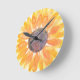 Este relógio floral é decorado com um girassol amarelo de cor-de-água original. Faz um dom perfeito para o lar. Original Watercolor © Michele Davies.