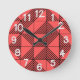 Este relógio de parede tem um design de arte deco de quadrados com linhas diagonais.
