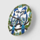 Arte colorida em papel representando dois jays azuis tocados em um galho, encapsulados em um quadro decorativo. A design mostra um intricado artesanato, matizes vibrantes e detalhes harmoniosos evocando a beleza e a criatividade da natureza.