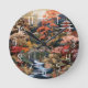 Relógio Redondo Arte da Paisagem Japonesa: Cascata e Aldeia