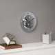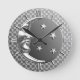Relógio Redondo Arte Deco Lua e Estrelas, Cinzas Hematitas e Prata