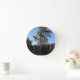 Relógio Redondo Árvore de Palma Balançando sob um Céu Limpo