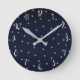 Relógio Redondo Azul Escuro & Dourado Rosa Brilho Estrelas Estrela