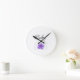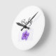Um doce relógio redondo para o berçário, este relógio diz a palavra "Bebê", sob a qual há uma pequena fotografia de uma violeta.