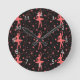 Um design bonito para as meninas que amam a dança. Um teste padrão de bailarinas cor-de-rosa da silhueta em um fundo preto com os redemoinhos do rosa e as estrelas cor-de-rosa disponíveis nos pulsos de disparo de parede personalizados que vêm em 2 formas circularmente e esquadram. Estes pulsos de disparo da bailarina seriam um presente perfeito para meninas.