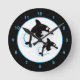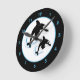 Dois bonitos e as orcas preto e branco graciosas, são brincalhão e saltando ao nadar no oceano. As orcas são sabidas igualmente como baleias de assassino. Os números são azuis em um quadro preto que cerca a face do relógio. Há igualmente um esboço azul fino em torno da face do relógio.